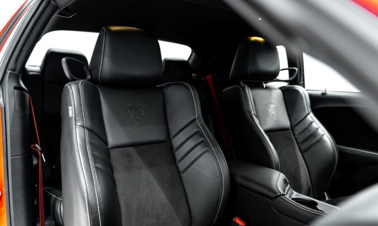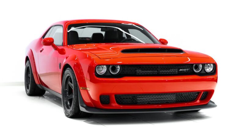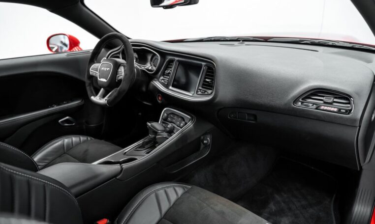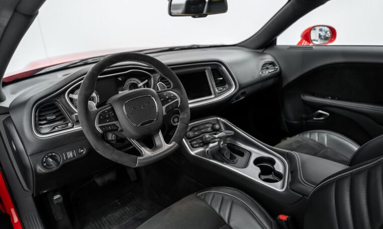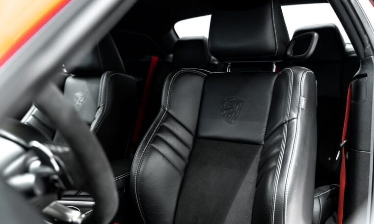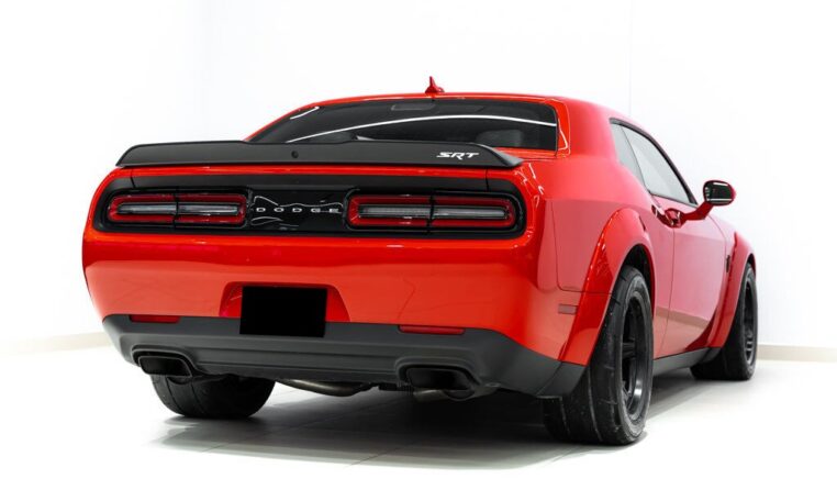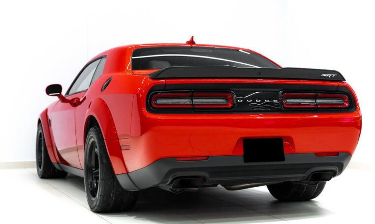 Toutes taxes comprisesUne bête dans les rues. Faites place à la Dodge Challenger SRT Demon 2018, la première voiture de série capable de décoller ses roues avant du sol en cas de forte accélération. Le cœur de la Demon réside dans son moteur V8 6,2 litres suralimenté, où 840 chevaux sont au rendez-vous avec l’aide de gaz de course. Réjouissez-vous de l’accélération record de ce muscle car à l’allure diabolique. La Demon vous propulse à des vitesses surnaturelles, atteignant les 100 km/h en seulement 2,3 secondes. Elle est équipée de deux clés, chacune donnant accès à différents niveaux de puissance – la clé noire est limitée à 500 chevaux, soit la puissance obtenue en mode Eco ; la clé rouge débloque l’accès au plein potentiel de la voiture. Libérez le monstre qui sommeille en vous avec la Dodge Challenger SRT Demon 2018. 👹